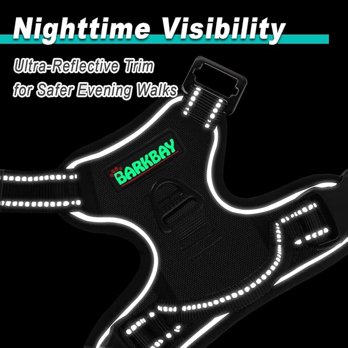 BARKBAY Dog Harness No Pull 3 Buckles for Small Dogs - Adjustable, Reflective, Comfortable, No Choke, Heavy-Duty - Perfect for Outdoor Training, Walking, and Hiking - Strong & Durable - S & Black