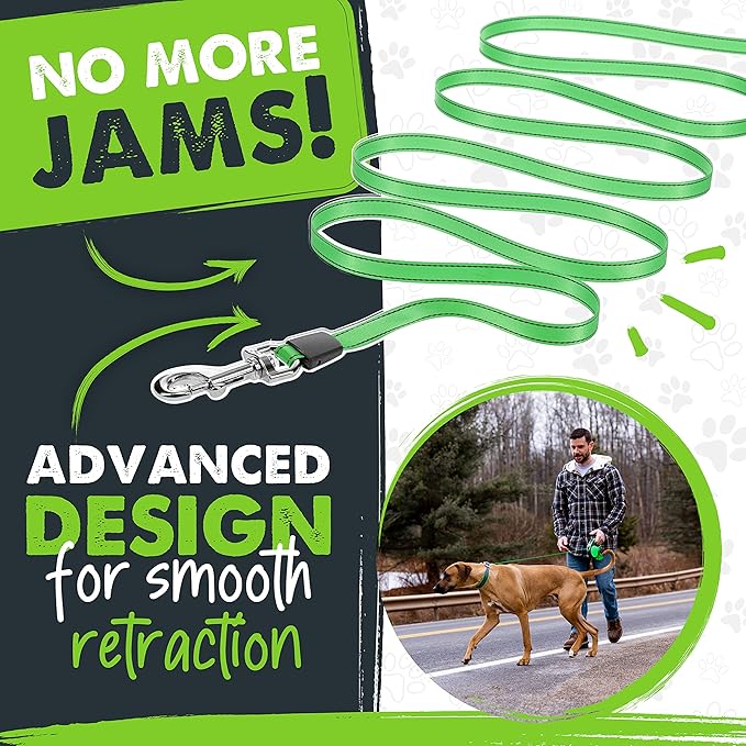 - Built Mighty Strong: Features a premium reflective nylon tape leash and a durable stainless steel coil to help prevent jams. A great heavy duty retractable dog leash for large dogs, medium breeds, and small pets!
