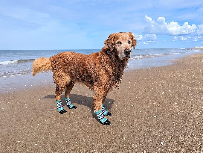 All Weather Neoprene Paw Protector Dog Boots with Reflective Straps in 5 Sizes! (Turquoise XL)
