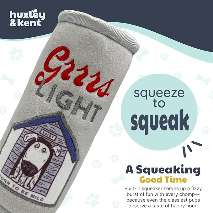 Huxley & Kent Funny Dog Toy w/Squeaker – Power Plush Squeaky Dog Toys for Small, Medium & Large Dogs – Soft Stuffed Animal for Indoor Play & Fetch - Grrrs Light, Small