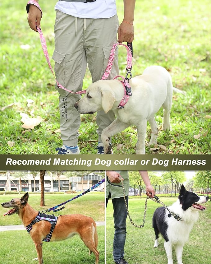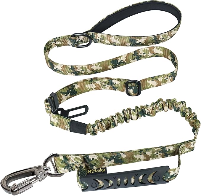 Hotsky Tactical Dog Leash Heavy Duty for Medium Large Dogs That Pull,4-6Ft Strong Bungee Shock Absorbing No Pull Dog Leash with Padded Double Handle and Car Seatbelt,Army Camo