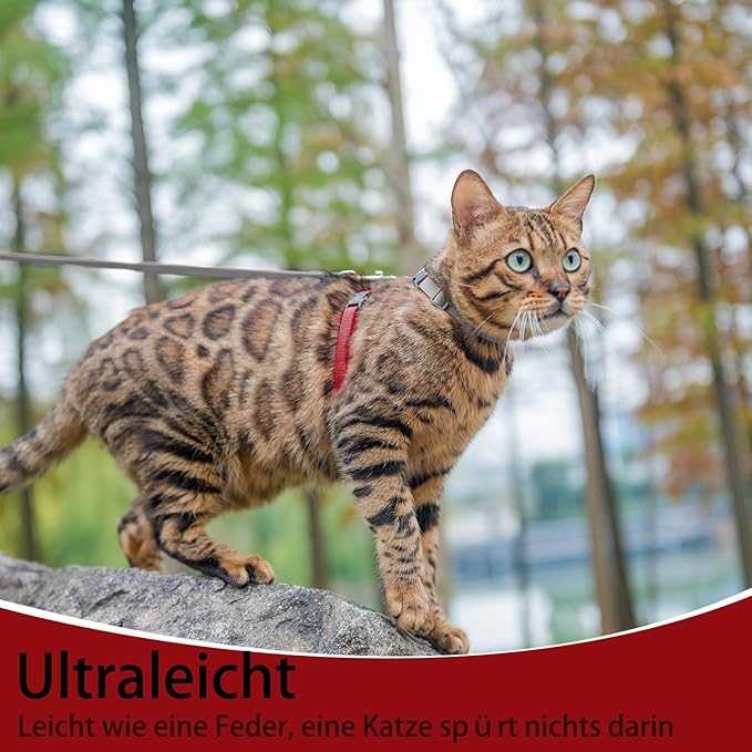 PUPTECK Adjustable Cat Harness and Leash Set Escape Proof Kitten Strap Collar for Walking Travel, Grey/Red Mixed