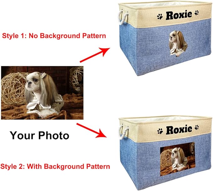 Custom Dog Basket for Toys Collapsible Storage Bin Grey Pink Blue Rectangular Pet Storage Organizer Box with Handles Extra Large Customized Name & Photo