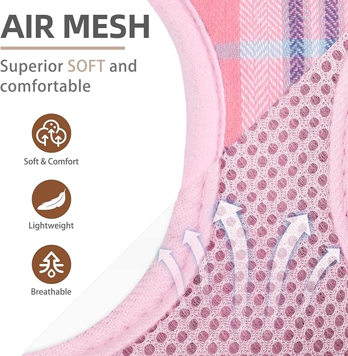 - [REFLECTIVE, PLAID PATTERN] - This Harness has two sides of reflective straps, and the middle logo also is reflective, so if you walk with your dog at night, then both of you will be safer! In addition, the classic plaid pattern is designed by our internal brand team, so it's very different from other normal harnesses. This plaid pattern looks both classic and stylish and is never out of date.