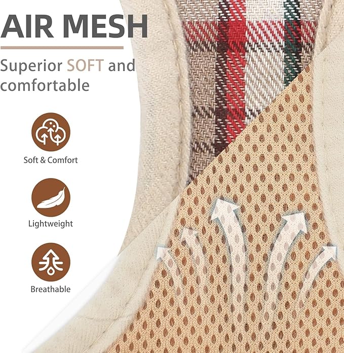 - [REFLECTIVE, PLAID PATTERN] - This Harness has two sides of reflective straps, and the middle logo also is reflective, so if you walk with your dog at night, then both of you will be safer! In addition, the classic plaid pattern is designed by our internal brand team, so it's very different from other normal harnesses. This plaid pattern looks both classic and stylish and is never out of date.