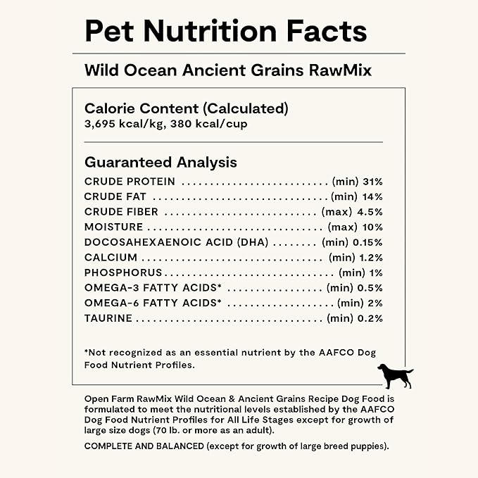 Open Farm, RawMix Dry Dog Food with Ancient Grains, Protein-Packed Kibble Coated in Bone Broth with Freeze Dried Raw Chunks, Salmon Whitefish & Rockfish,Wild Ocean Recipe, 3.5lb Bag