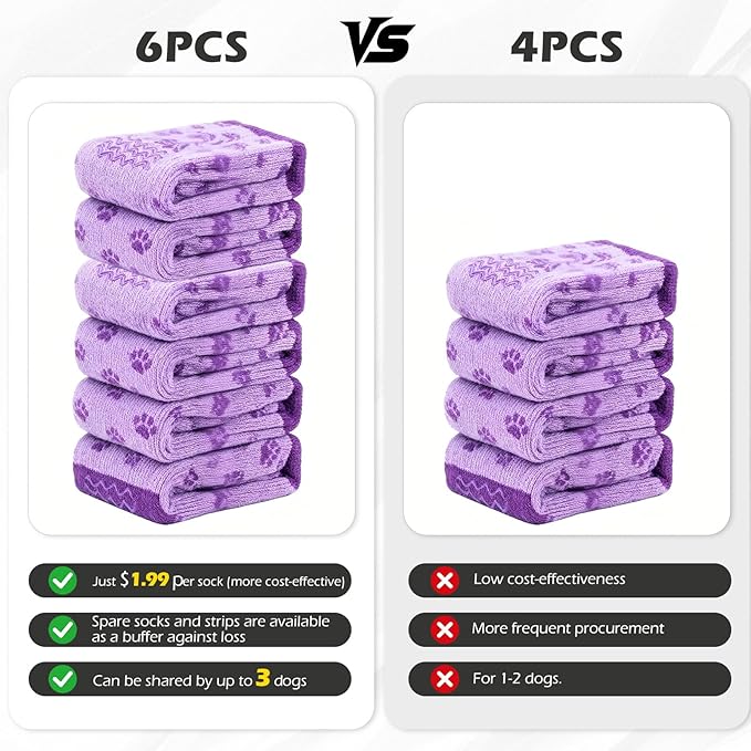 - DOUBLE-SIDED GRIPS: Designed with unique wave-shaped grips on both sides, these socks offer excellent traction, reducing the risk of slips on smooth surfaces. Perfect for puppies, senior dogs, and pets who need extra stability. The anti slip rubber covers a larger area, providing more effective grip