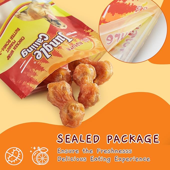 Jungle Calling Rawhide Free Dog Chew Treats, Real Chicken Wrapped Peanut Butter Bones, Teeth Clean Chewy Training Snacks, 6 oz