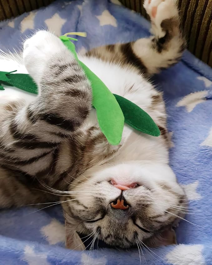 CiyvoLyeen Catnip Toy, Green Bean Cat Toys Kitten Supplies Interactive Kicker Vegetables Vegan Dental Health Teething Chew Gift for Cat Lovers Indoor 4PCS