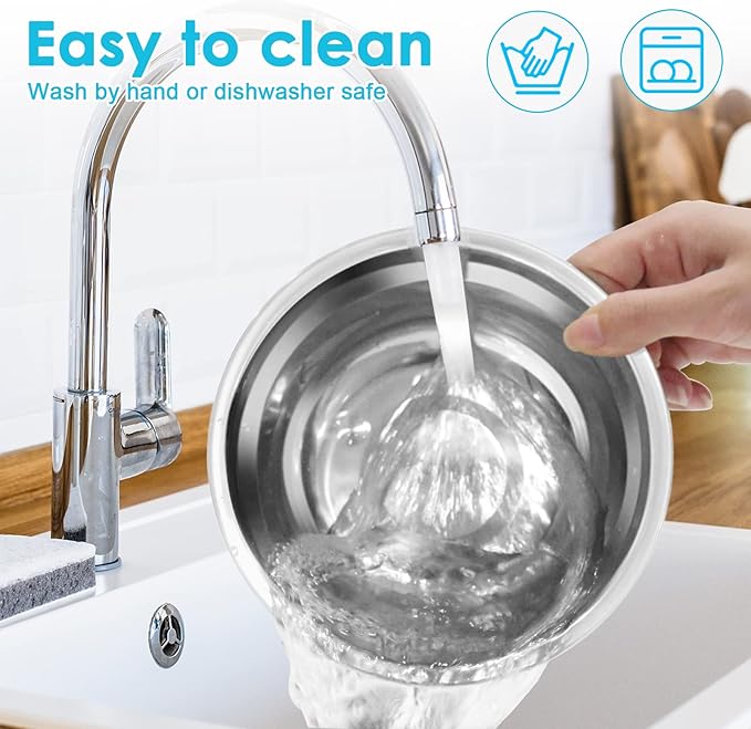 - Premium Stainless Steel: High-quality stainless steel is safe, and heat resistant. The stainless steel bowl is sturdy for long-term use and healthy for your beloved pets especially for holding hot food.