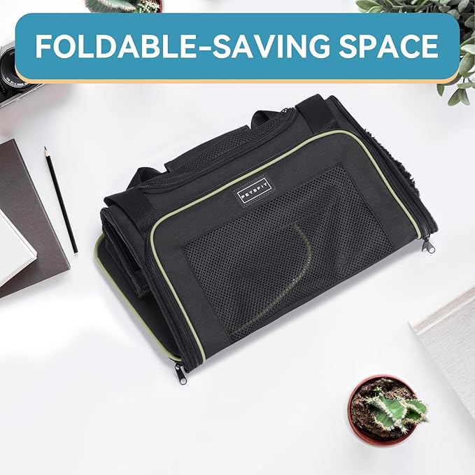 PETSFIT Pet Carrier Airline Approved with Extendable Mat, Dog Carriers for Small Dogs, TSA Approved Pet Carrier, Puppy Carrier for Small and Medium Cats Under 12 Lbs, Black