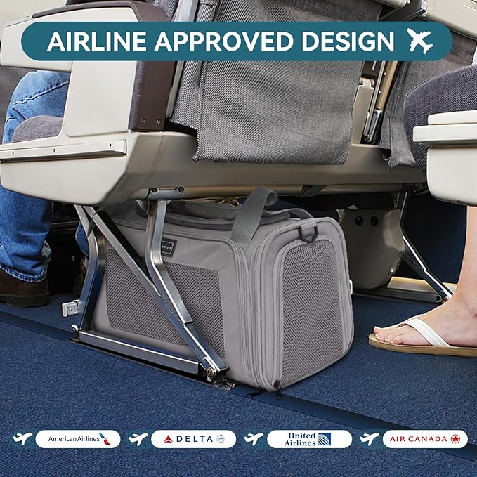 - [Airline Approved Cat Carrier] Pet Carrying Bag size 17.5*10.5*10.5 inches, Mainly Complies with Delta Air, United Airlines and Other Famous Airlines Under the Seat.The cat carrier comes with an extendable cozy fleece pet mat, providing extra comfort for older cats or cats with mobility issues