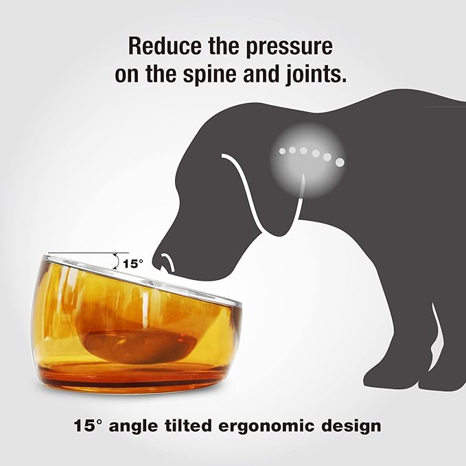 - ERGONOMIC 15° TILTED & RAISED BOWL FOR SHORT-LEGGED BREEDS : The patented 15° slanted and elevated design provides an ideal feeding position for Chondrodystrophic breeds with short legs and long bodies, such as Beagle, Pomeranian, Corgi, English & French Bulldog, Terrier, Dachshund, and Maine Coon. This angled bowl reduces neck strain, supports better posture, and promotes healthy digestion.