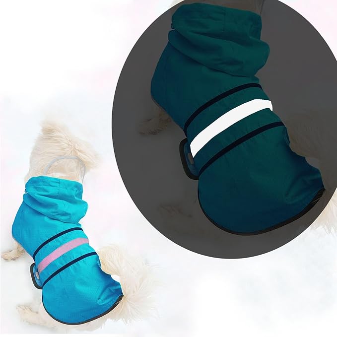 Dog Raincoat Waterproof Reflective Slicker - Lightweight Breathable Hooded Poncho Rain Coat Jacket with Adjustable Belly Strap and Leash Hole for Small Medium Large Dogs (Small, Blue)