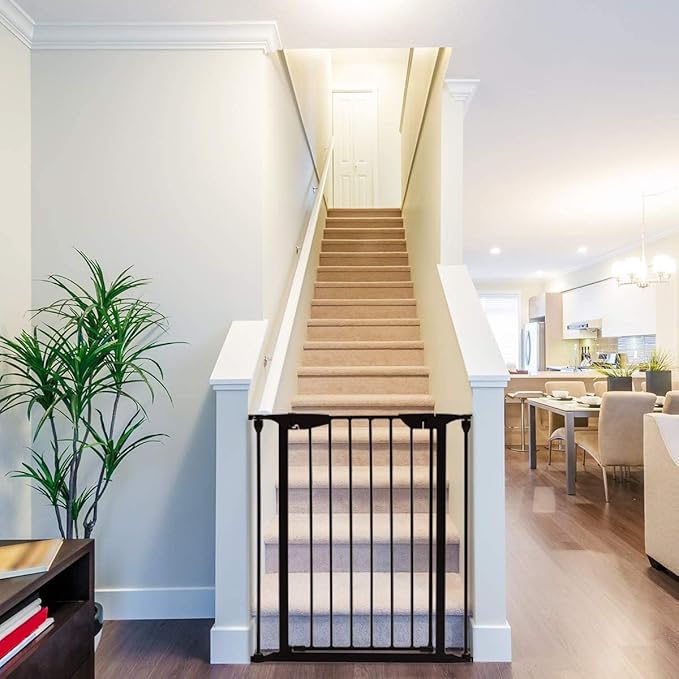 - 【Sturdy and Durable】Made with steel frame construction and included mounting brackets, this toddler fence provides strength and support you can depend on to keep your or pets safe