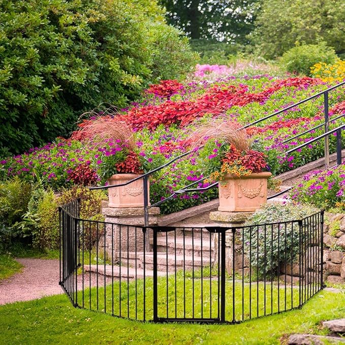 - 【4-IN-1 Metal Safety Gate】1. Pet Gate - It can be used as a freestanding pet gate when you set it up as a circular enclosure; 2. Safety Fence - Suitable to use around fireplaces, grills, wood burning stoves, Christmas tree, etc; 3. Play yard: Set up sectioned off areas in your home for your pets; 4. Barrier: Solid construction make this a great option for creating room dividers;