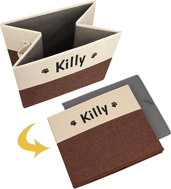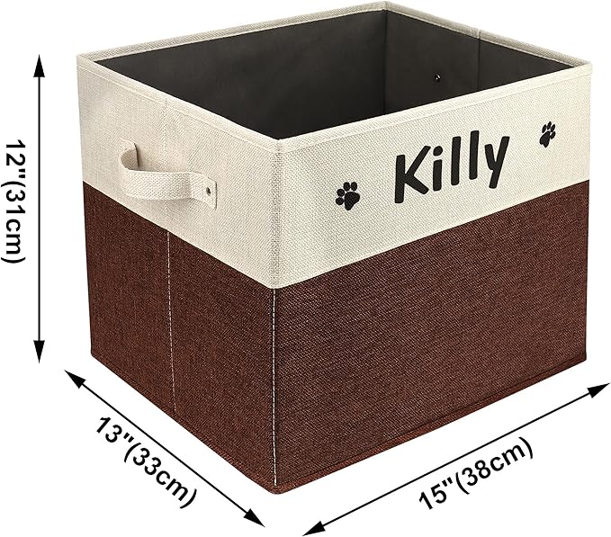 PET ARTIST Large Dog Toy Basket, Custom Toy Bin Box Personalized with Pet's Name, Collapsible Pet Storage Baksets With Handle for Toys,Blankets,Accessories- Brown