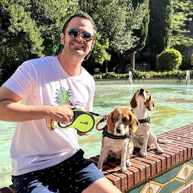 - 【Built-in Rechargeable LED Light】Pecute retractable dog leash with USB rechargeable LED light improves nighttime visibility, keeping you and your dog safer during early morning or evening walks. Convenient and reliable — no extra flashlight needed.