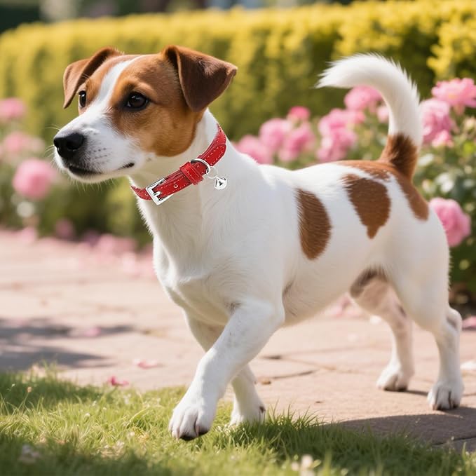 PUPTECK 2 PCS Soft Genuine Leather Cat Kitten Collar with Bells Adjustable for Girl Boy Cats Puppy - Red, Silvery