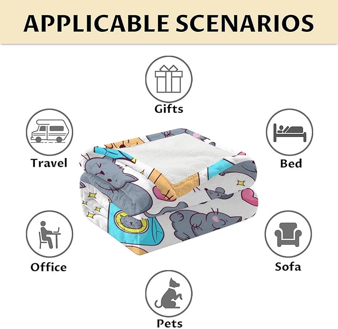 - Snuggle-Worthy Texture: Get ready to sink into the snuggly, fluffy texture of our Cat-themed throw. It's the ultimate companion for reading, watching movies, or simply relaxing in warmth. Cat blankets are light, breathable, lint-free, non-pilling, wrinkle-resistant, and lint-free.