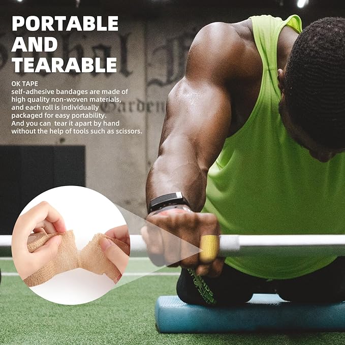 - Easily to use and Tearable - OK TAPE self adhesive bandage wrap is packed individually in clear bag, clean and hygienic. First aid use this to keep gauze on a wound, don't worry about adhesive residue. It tears easily at certain angles, no scissors required.