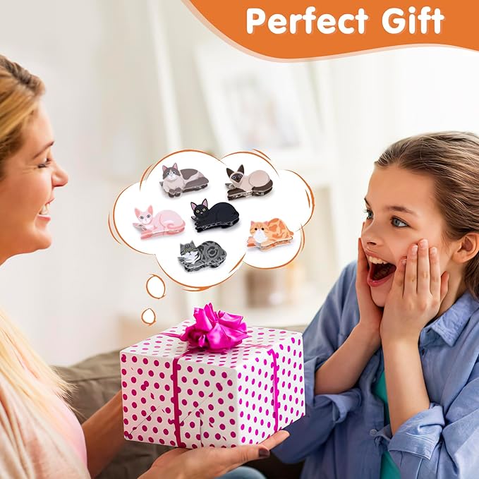 Cat Hair Claw Clips for Women Girls Cute Small Hairpins Hairgrips For Short Long Hair Breastpin Gift Idea For Her Daughter Kitty Lovers Girl's School Companions Set of 6