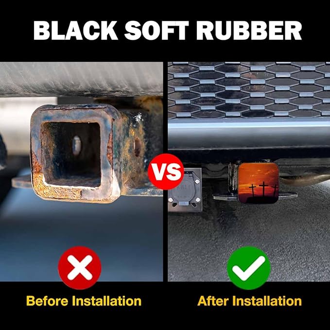 - ★ 1.Christian Cross HITCH COVER - - Made of durable black rubber. Our hitch plug is designed to fit tightly and and durable, without deformation and falling off easily;