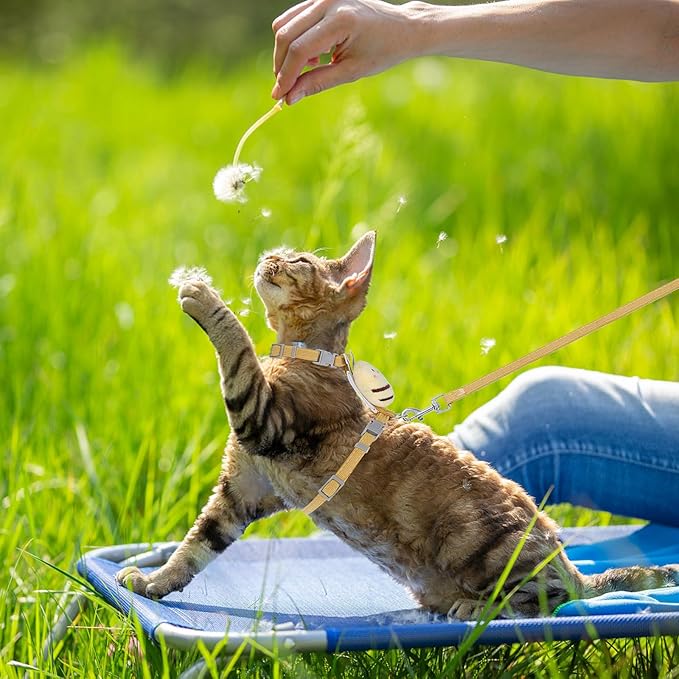 - 【Comfortable Outdoor Harness】: made harness with the most light weight materials available so that your Kitty won’t even notice they are wearing this harness, while still keeping him/her cool with its breathable air mesh. Soft and lightweight (approx. 56g), suitable for daily walking, jogging, training, and any outdoor recreations