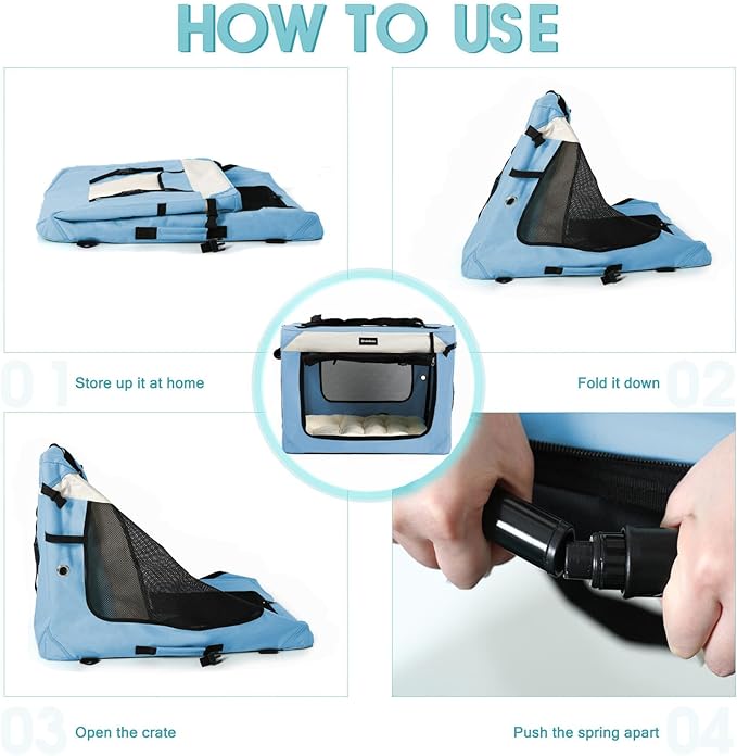 - Foldable easy to store and carry pet crate,qucik assembly no tools need, inner Alloy Steel frame support, sturdy and lightweight. water resistant fabric cover easy to clean, cover removeable and washable.