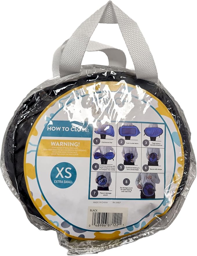 - Easily pops up and folds flat to 9" round. Comes with a convenient storage pouch, for backpack or luggage.