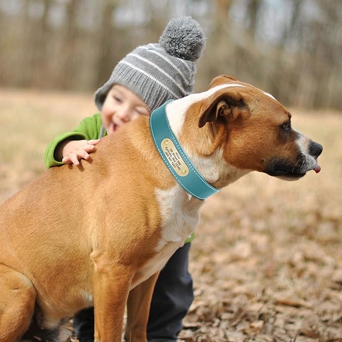 Didog Genuine Leather Dog Collars with Engraved Nameplate, Personalized Soft Leather Dog Collar with Custom ID Tag, Brown/Green/Red for Small Dogs (M,Blue)
