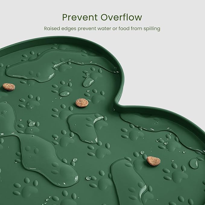 - Raised Edge - The high edge of this feeder mat keeps food and water within the tray and prevents spillage onto a clean floor. Keep your living space tidy and clean, say goodbye to messy floors, you just need to clean the dog bowl mat regularly.