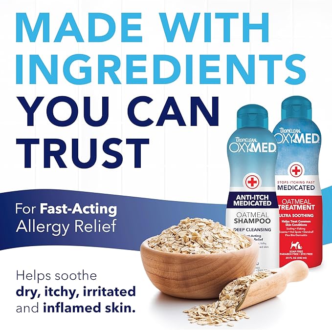 TropiClean Oxymed Medicated Cat & Dog Shampoo and Conditioner Set for Itchy Skin, Skin Soothing Oatmeal Shampoo & Conditioner for Dogs & Cats | Set of 2
