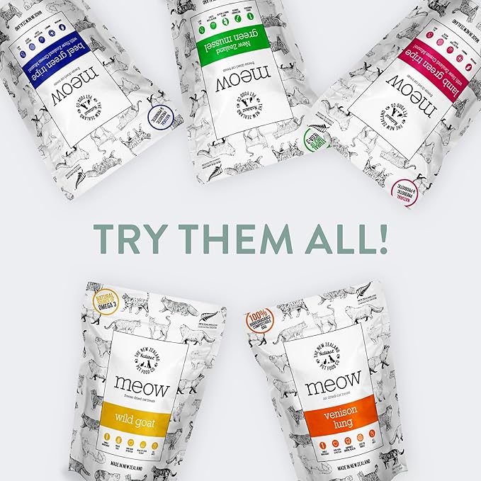 The New Zealand Natural Pet Food Co Meow Air Dried Cat Treats - Venison Lung, High Protein, Healthy Cat Snacks and Toppers, All Natural for All Life Stages, 1.76 oz
