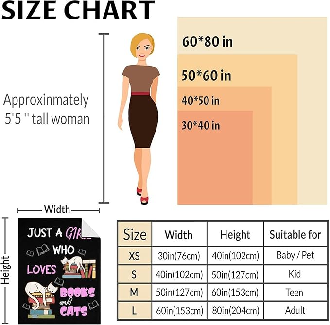 - Versatile Sizes for Every Need: Our Cat-themed fleece blankets come in a range of sizes to cater to your specific requirements. Whether you need a lap-size (30” x 40”) for cozying up on the couch, a crib-size (40” x 50”) for your little one, a throw-size (50” x 60”) for added warmth, or a twin-size (60” x 80”) for your bed, we have you covered. With these versatile size options, there's a perfect Cat blanket for everyone in the family.