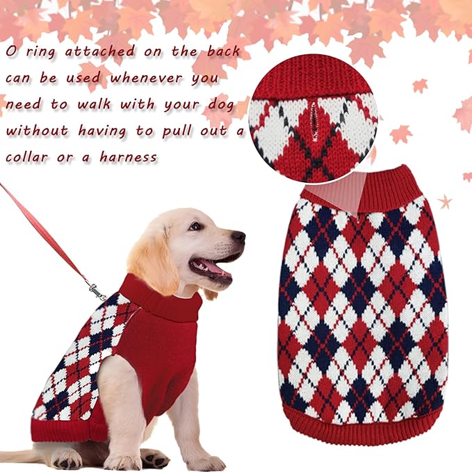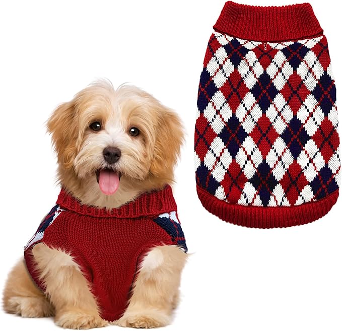 - Classic Style - Color blocking Rhombus Plaid Vintage Cable-knit ,more charming and good looking during the cold winter, and perfect for the holidays and daily wear. The Red one is perfect for Christmas and Thanksgiving. Bring a festive atmosphere to your furry friend.