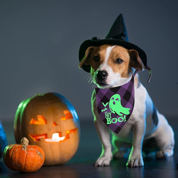 - Halloween Dog Bandanas: Classic plaid design, traditional halloween orange and black color, reflective "Trick or Treat" and "hey boo" pattern, It’s born for halloween, make your dog look attractive and unique on halloween day.