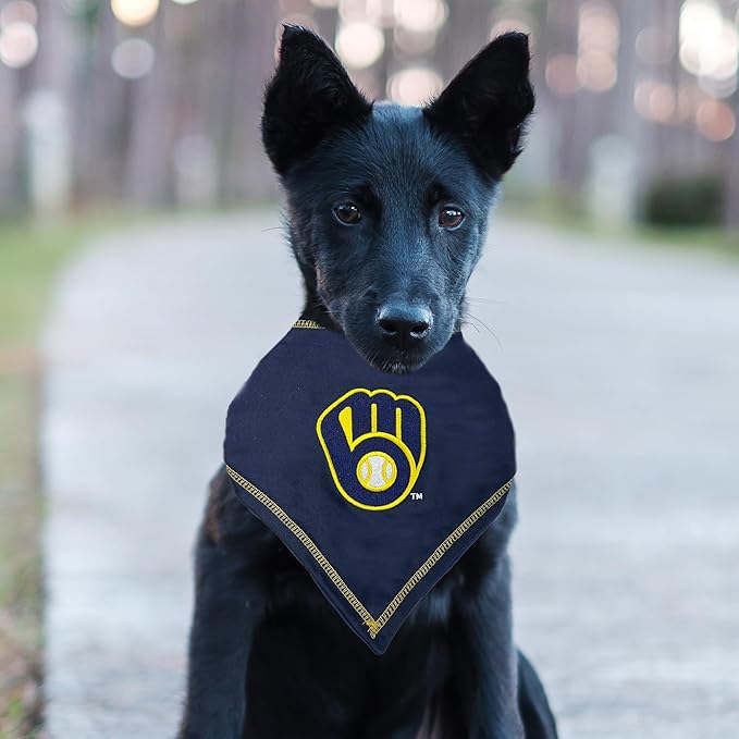 Pets First Milwaukee Brewers TIE Bandana, Small/Medium. Dog Bandana Scarf Bib for Pet Cat Dog. The Ultimate Game-Day, Party Bandana, Birthday Event