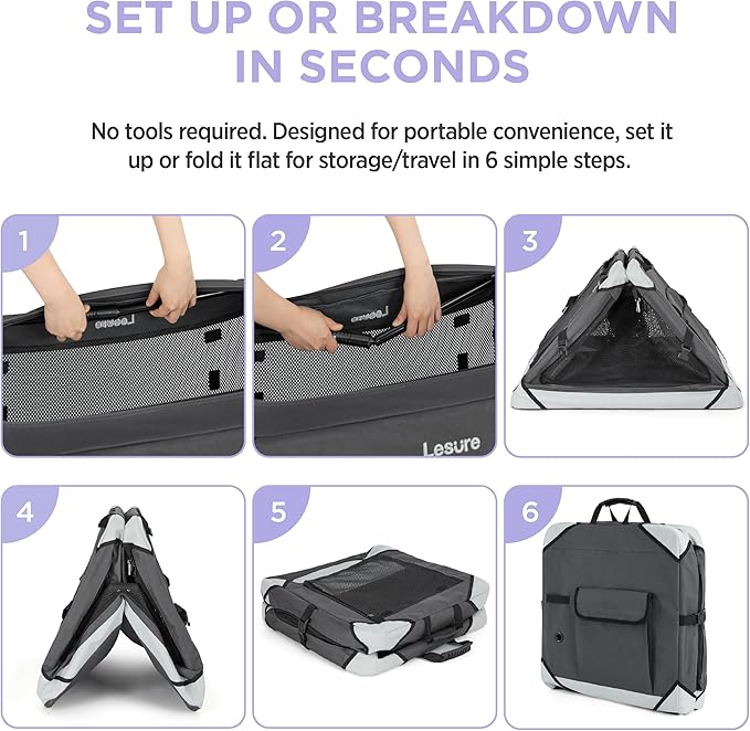 - Breathable Design: Four zippered doors of this escape proof dog crate give your pet multiple ways to enter and exit their new home. Four high-density mesh windows can provide excellent visibility and ventilation. Roll up and secure the mesh panels with velcro for extra air flow and to check on your furry friend.