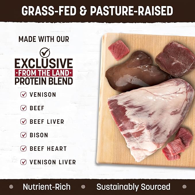 - Sustainably Sourced Protein: Made with grass-fed, pasture raised venison, beef, bison, as well as wild-caught sardines.