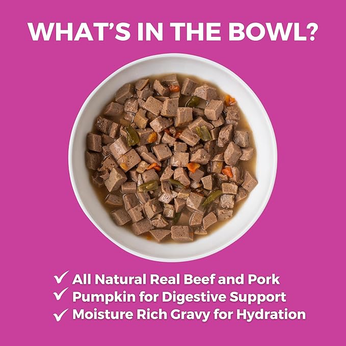 - HOMESTYLE MEAL WITHOUT FILLERS: Your dog will love the delicious cuts of beef and pork in gravy, without any junky fillers like peas, potatoes, or corn that can lead to digestive issues.