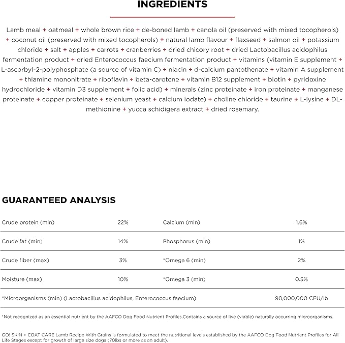 Go! Solutions Skin + Coat Care, Dry Dog Food, Lamb Recipe with Grains, 22 lb Bag