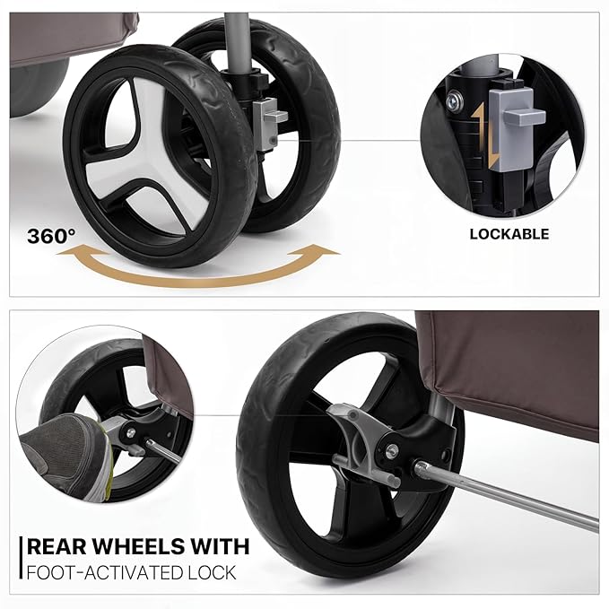 - Humanized Design - With convenient features like swivel front wheels, cup holders, and a hooded peak-top window, this pet stroller makes taking your pet out for exercise and fresh air an easy and enjoyable experience. The roomy design and undercarriage storage basket give you plenty of space to carry your essentials, too.
