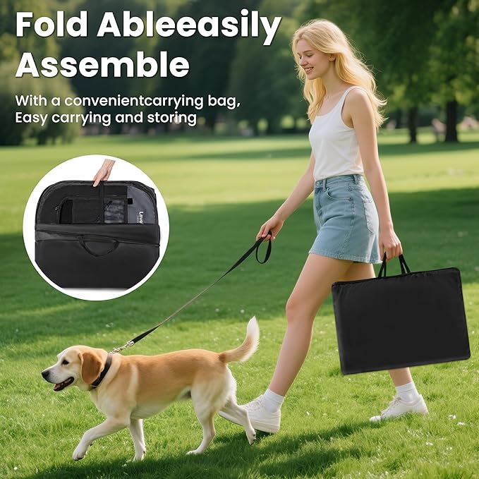 - No Assembly Required and Easy to Store: The Portable Pet Play Pen comes along with a convenient carrying case that can easily store your playpen. It takes seconds to open the dog playpen from folded storage bag, no assembly required. And it's also easy to fold back flat when not in use. Our lightweight portable pet playpen can be used indoors, outdoors, traveling, camping, etc.