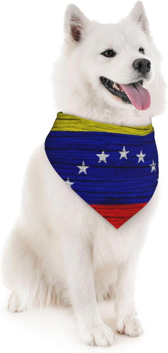 Venezuela Wooden Texture Venezuelan Flag Dog Bandana Scarf Triangle Bibs Pet Accessories Cat Kerchief