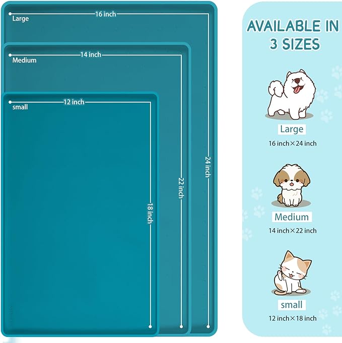 - Multiple Sizes & After-Sales: Service Our cat feeding mat and dog dish mats for floors waterproof come in 3 sizes and 8 colors, making them ideal for pets of all sizes. The dog food trays for floors can also be used as a rubber shoe mat tray, under sink mat, under sink tray, cat litter mat and litter box mat. If you have a chewer, please supervise him/her while using the cat bowl mat and dog bowl mat waterproof. Any issues, please feel free to contact us
