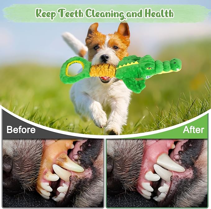 - Large Size Dog Chew Toy: With a total length of 17 inches and a retractable body section that stretches up to 23 inches, this crocodile-shaped plush toy is perfect for tugging, chewing, and close play, providing endless moments of joy