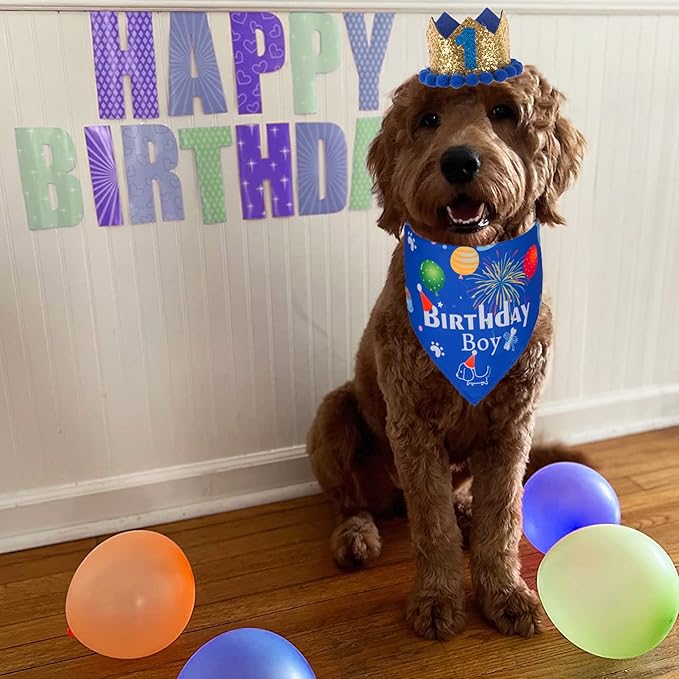 - Dog birthday bandana is designed with "Birthday Boy" letter and various dog and birthday elements, perefect for pet birthday. Made of soft and lightweight polyester fabric, comfortable to wear.