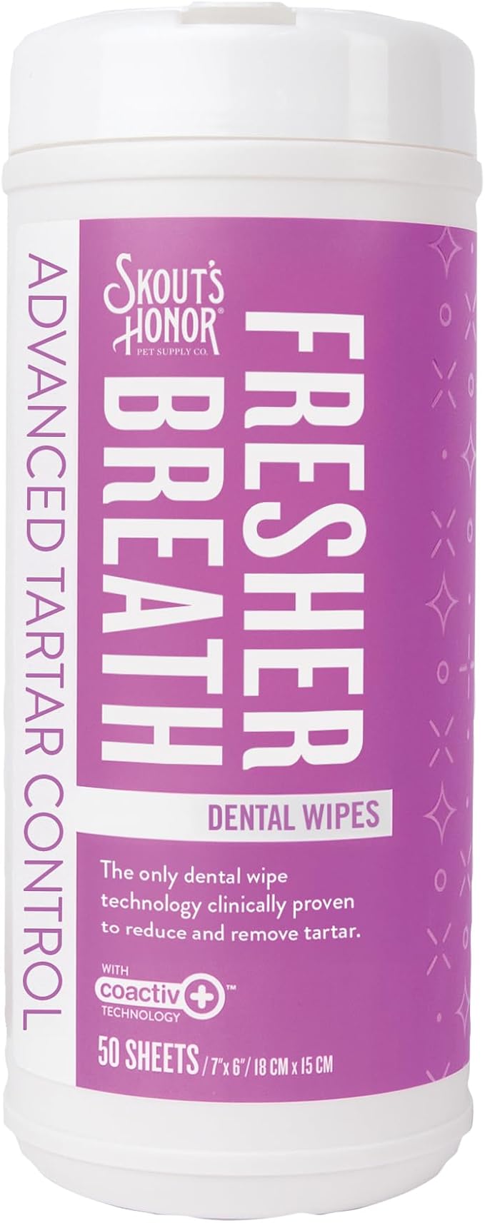 SKOUT'S HONOR Fresher Breath Dental Wipes- Pet Dental Wipes - Fights Plaque and Tartar, Freshens Breath Fast, No Brushing Required, 50 Sheets