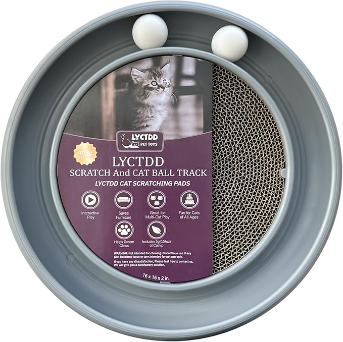 - 【Cat Scratching Board Set】:The round cat scratcher toy comes with 1 cat ball track base (16 inches in diameter),Toys for all kinds of big and small cats,1 round cat scratcher refill (11 inches in diameter),2 rolling cat toy balls,Preventing Loss,that keeps your cat entertained for hours.